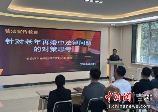 中新網(wǎng)吉林新聞9月2日電 (石洪宇 馮昊)近日,長(zhǎng)春汽車經(jīng)濟(jì)技術(shù)開發(fā)區(qū)人民法院審判委員會(huì)專職委員沈楠與立案庭法官助理馮昊走進(jìn)楊柳社區(qū),并以“針對(duì)老年再婚中法律問題的對(duì)策思考”為主題開展普法講座,為老年群體和社區(qū)工作人員普及相關(guān)法律知識(shí)。