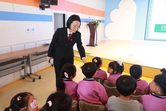 活動(dòng)中,樸宣蓉結(jié)合學(xué)齡前兒童認(rèn)知特點(diǎn),將法治安全知識(shí)融入動(dòng)畫展示與情景模擬。圍繞校園安全、交通安全、食品安全等主題,通過播放安全教育短片、情景模擬互動(dòng)等方式,引導(dǎo)孩子們?cè)谳p松氛圍中認(rèn)識(shí)潛在風(fēng)險(xiǎn),學(xué)習(xí)自我保護(hù)方法。