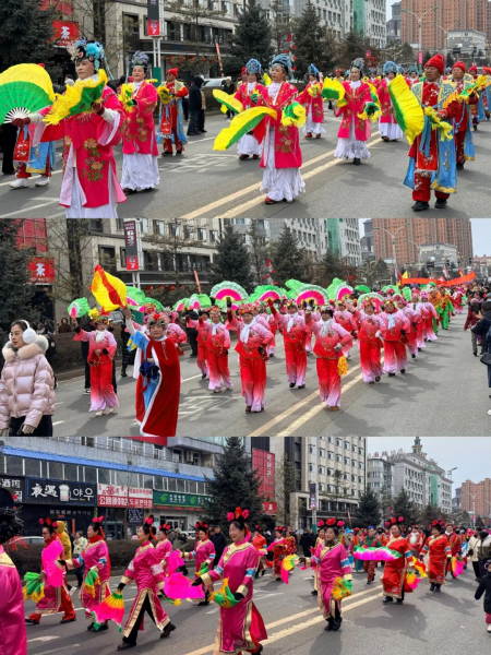 20支秧歌隊伍從大劇院出發(fā),沿南湖大街至敖東大街與長白路交匯處行進展演,傳統(tǒng)東北大秧歌、滿族秧歌輪番登場,踩高蹺、舞龍舞獅……各類非遺絕活悉數(shù)展現(xiàn)。樂隊嗩吶與鑼鼓镲交織出快慢錯落的傳統(tǒng)曲牌,演員們將秧歌的精髓演繹得淋漓盡致,成為街頭流動的風(fēng)景線,隊伍一路載歌載舞,所到之處歡呼不斷,喜慶氛圍遍布敦城街巷,生動展現(xiàn)“吉祥敦化”的和諧盛景。
