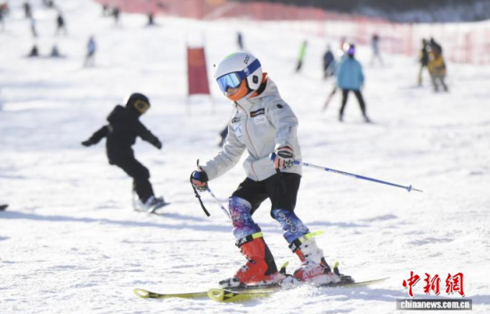 吉林霧凇冰雪節(jié)開幕當(dāng)天,游客在中旅松花湖滑雪場(chǎng)暢滑!∈橛 攝