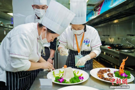 當天上午,多支代表隊在后廚忙碌,操作臺上,參賽廚師依照藥膳指導(dǎo)師開具的方子,將精選的人參等藥材進行預(yù)處理,再與母雞、松花江魚等主料一同入鍋!斑@道湯適合體虛者,我們控制了人參用量,確保其口味和養(yǎng)生功效!币晃贿x手介紹。