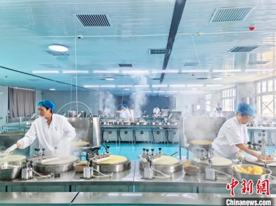 工作人員介紹,每名工人可同時(shí)兼顧4個(gè)煎餅鏊子。這條由企業(yè)自主研發(fā)的生產(chǎn)線,既保證了煎餅的傳統(tǒng)風(fēng)味,又大幅提高了生產(chǎn)效率。