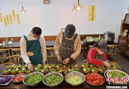 中新網(wǎng)長春5月8日電 (李彥國)8日的吉林長春陰雨綿綿,不過這并未影響到皓皓和伙伴們的工作熱情,切菜、擺盤、備餐……3名心智障礙青年在此開啟每天的“社會(huì)實(shí)踐課”,通過幫廚感知、融入社會(huì)。