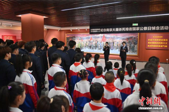 12月13日,吉林長春,民眾參觀“艱苦卓絕十四年——東北人民抗戰(zhàn)史實(shí)陳列”。當(dāng)天是南京大屠殺死難者國家公祭日,長春各界人士來到偽滿皇宮博物院暨東北淪陷史陳列館,悼念南京大屠殺死難同胞和抗戰(zhàn)英烈。 中新社記者 張瑤 攝