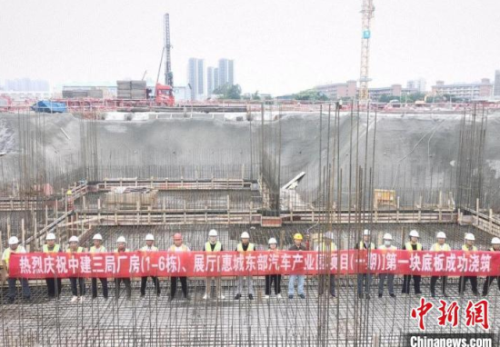 惠州惠城東部汽車產(chǎn)業(yè)園項目首塊底板順利完成澆筑。中建三局 供圖