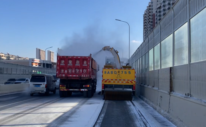 李文秀介紹,早高峰結(jié)束后,次要街路立即啟動(dòng)全面清雪作業(yè);針對(duì)快速路及主要街路路面積雪已被車輛壓實(shí)的情況,已第一時(shí)間采取融冰融雪處置措施,于中午12時(shí)以后啟動(dòng)反復(fù)清掃作業(yè),同步調(diào)配運(yùn)雪車輛開展邊清邊運(yùn),最大限度降低路面積雪存量。