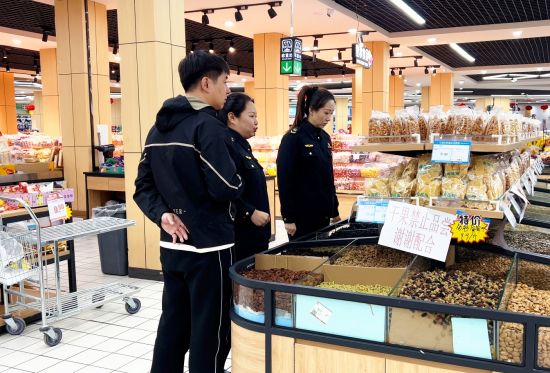 此外,針對超市內(nèi)貨架琳瑯滿目的預(yù)包裝食品和散裝食品,執(zhí)法人員進行了“地毯式”排查。重點檢查預(yù)包裝食品是否過期、標(biāo)簽標(biāo)識是否規(guī)范;散裝食品是否清晰地標(biāo)明食品名稱、生產(chǎn)日期、保質(zhì)期等信息,全力保障各族群眾消費環(huán)境安全。