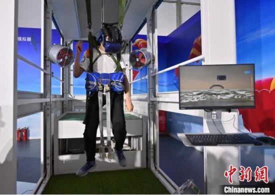 參觀者在進(jìn)行跳傘體驗(yàn)。張瑤 攝
