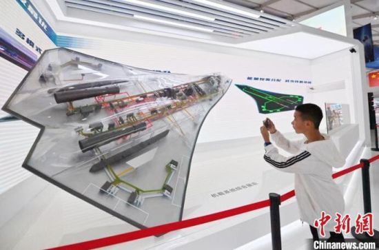 參觀者在為飛機(jī)模型拍照。張瑤 攝