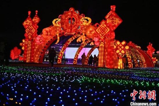 12月27日,吉林松原,數百組花燈流光溢彩,營造出濃厚的新年氛圍,吸引市民前來觀賞。