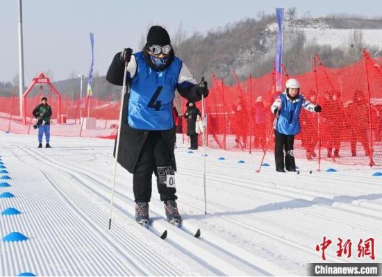 選手在雪鞋走比賽中激烈比拼。張瑤 攝