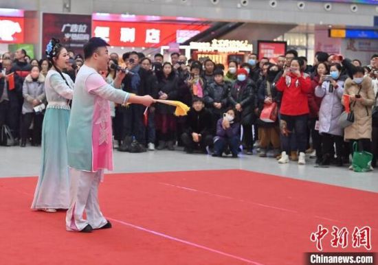 演員在為旅客表演二人轉(zhuǎn)。張瑤 攝
