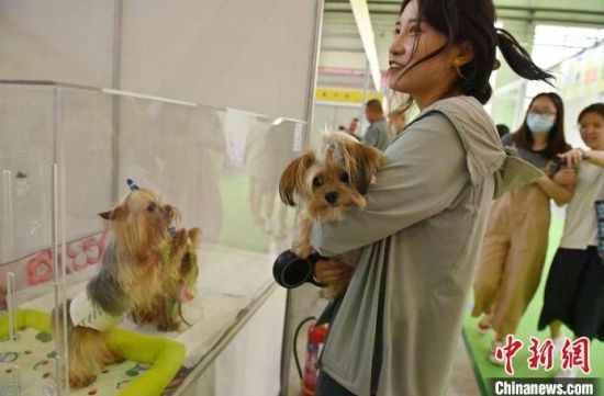 6月28日,吉林長春,逛展市民看鸚鵡。當(dāng)日,2024東北亞(長春)國際寵物展在長春開幕,百余個知名品牌和200余名寵物繁育者攜2000余個寵物活體齊聚,吸引市民攜帶愛寵逛展。 (中新社記者 張瑤 攝)