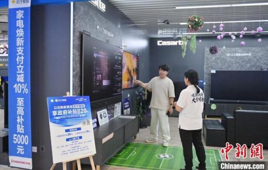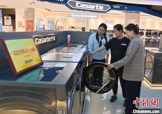 9月11日,吉林長(zhǎng)春,市民在了解熱水器產(chǎn)品信息。今年以來,中國(guó)消費(fèi)品以舊換新政策不斷優(yōu)化擴(kuò)圍。在吉林,家電市場(chǎng)迎來一波消費(fèi)熱潮。中新社記者 張瑤 攝