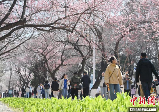 4月20日,吉林長春,吉林大學(xué)校園內(nèi)杏花競相綻放,匯成粉白色的海洋,吸引市民前來賞花、拍照。  中新社記者 張瑤 攝