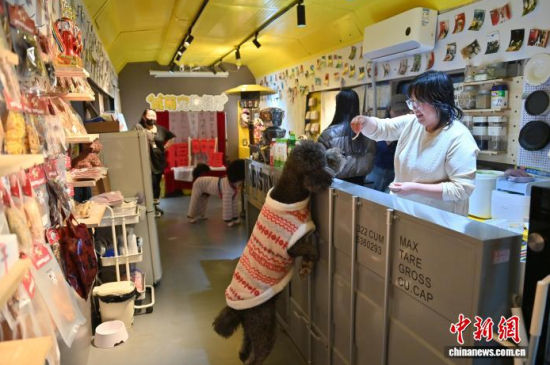 2月11日,吉林長春,小狗在火車車廂主題寵物餐廳旁經(jīng)過。該餐廳集寵物餐飲、游樂與社交功能于一體,為寵物打造沉浸式用餐體驗(yàn)。臨近春節(jié),后廚正加緊趕制寵物年夜飯,新年禮盒供不應(yīng)求,不少寵主早早預(yù)訂“車廂座位”。中新社記者 張瑤 攝