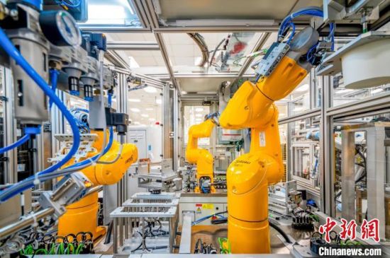 中新網(wǎng)長春4月20日電 (記者 郭佳)在長春一家汽車電子工廠,AGV機器人來回穿梭將物料精準(zhǔn)送到生產(chǎn)線指定位置,一排排工業(yè)機器人靈活地組裝工件。